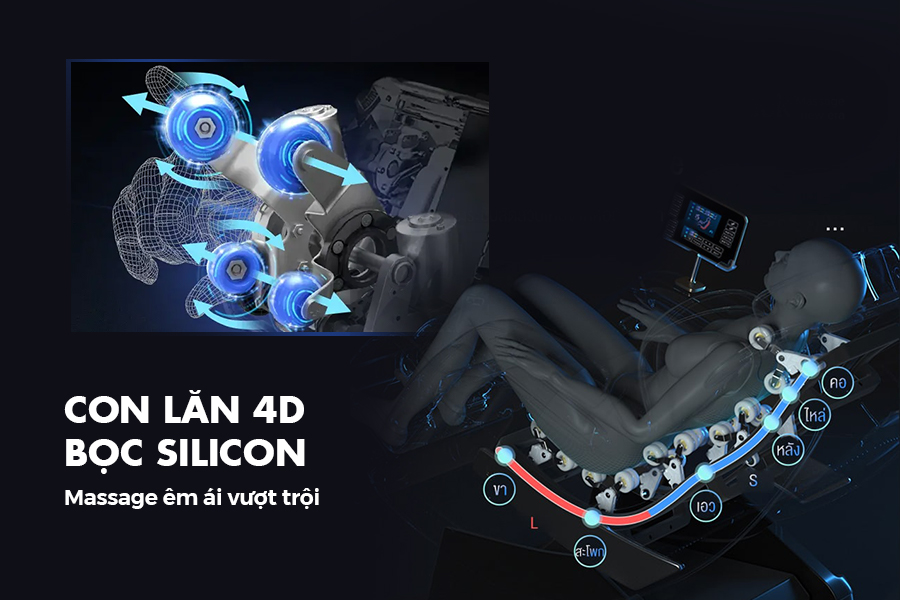 Con lăn 4D bọc silicon massage vượt trội với khung SL.