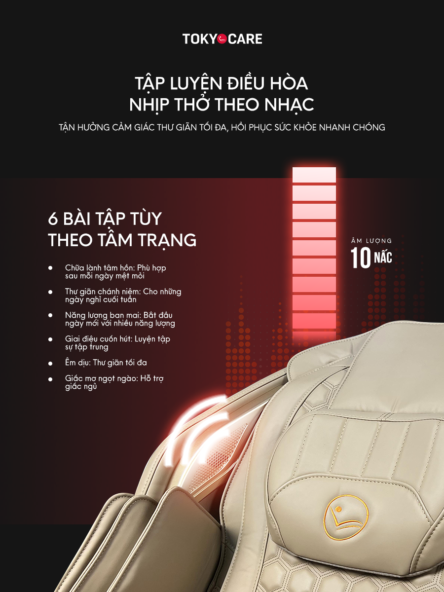 * Massage theo nhạc điệu, tập Yoga cùng ghế massage: 6 bài massage thư giãn kết hợp điều hòa nhịp thở theo bài tập cùng các chuyên gia Yoga.