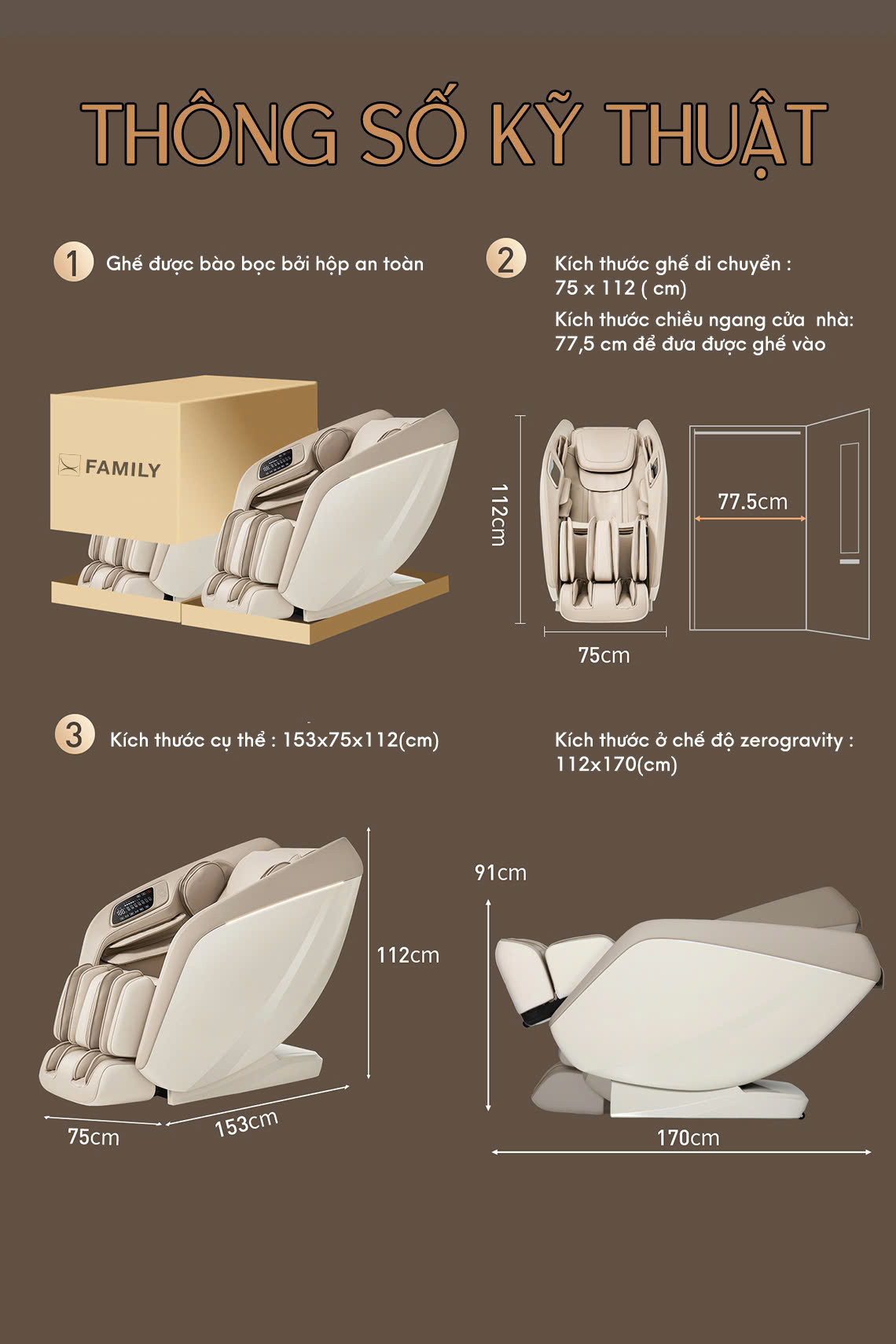 | Kích thước ghế đứng ( Dài x rộng x cao ) | 153x75x112 (cm) |