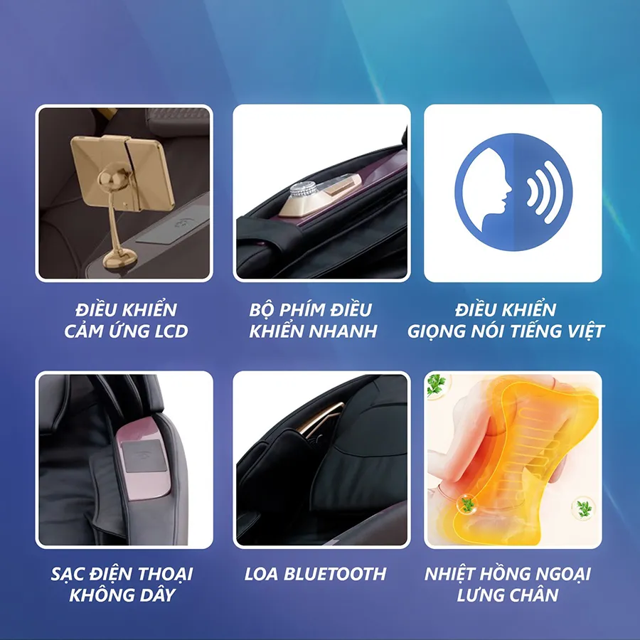 Tính năng massage không trọng lực mô phỏng tư thế chuẩn của phi hành gia, giúp giảm tối đa áp lực lên cột sống và nội tạng. Nhờ đó, cơ thể được thả lỏng hoàn toàn, tuần hoàn máu lưu thông tốt hơn, hạn chế các bệnh lý xương khớp và mang lại trạng thái thư giãn sâu.