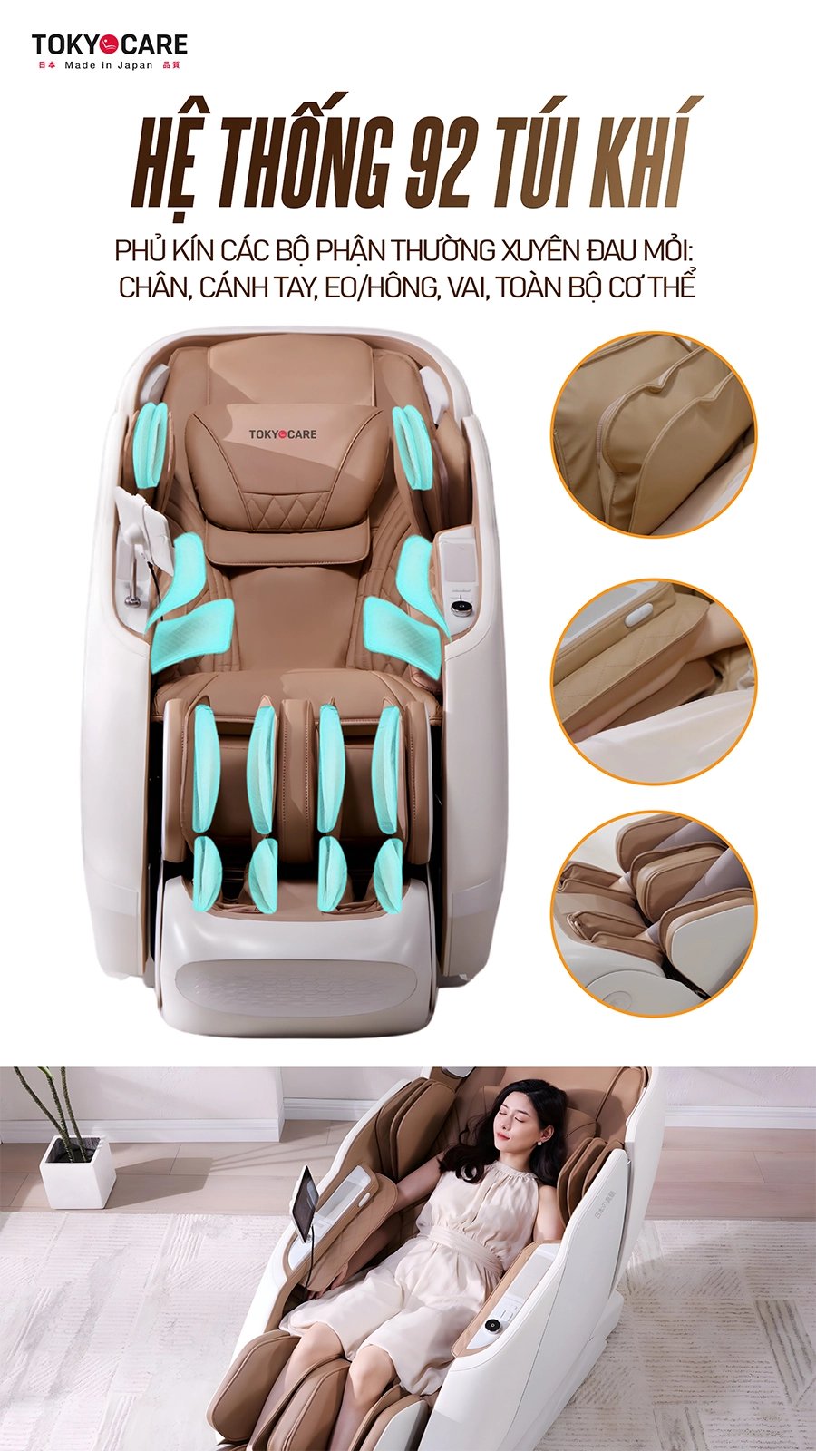 Ghế Massage JC-6866 là dòng ghế massage cao cấp Made in Japan, được sản xuất trực tiếp tại Nhật Bản và vận hành theo chuẩn điện 110V, đáp ứng đầy đủ các tiêu chuẩn nghiêm ngặt về chất lượng, độ bền và độ chính xác trong từng chuyển động massage.