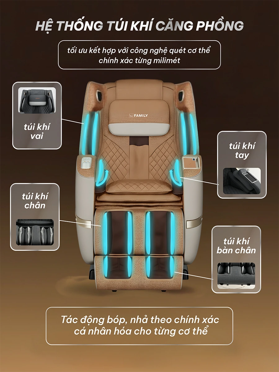 - Ghế massage toàn thân Family FC-555 model 2025 là siêu phẩm dành riêng cho các gia đình trẻ: " Yêu sức khỏe - Sống có gu "