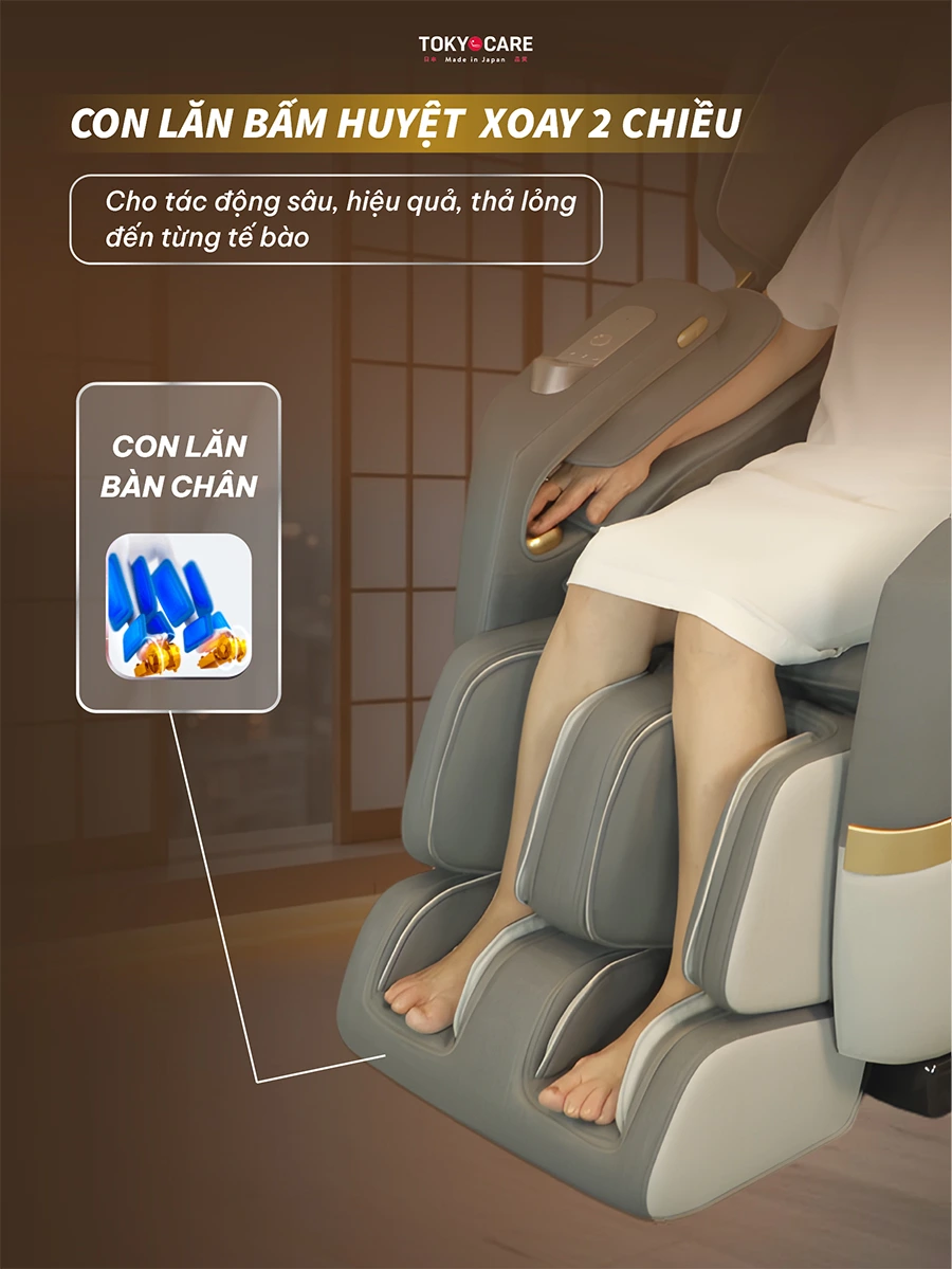 Con lăn bấm huyệt xoay 2 chiều của FC-555 tác động sâu vào các huyệt đạo ở lòng bàn chân-cảm nhận thư giãn đến từng tế bào, nơi tập trung nhiều mạch thần kinh và được mệnh danh là "trái tim thứ hai" của cơ thể. Bấm huyệt đúng cách tại lòng bàn chân không chỉ mang lại cảm giác thư giãn tức thì mà còn đem lại nhiều lợi ích sức khỏe. Với thiết kế cải tiến, FC-555 thấu hiểu và đáp ứng nhu cầu chăm sóc sức khỏe của khách hàng một cách tinh tế và hiệu quả.