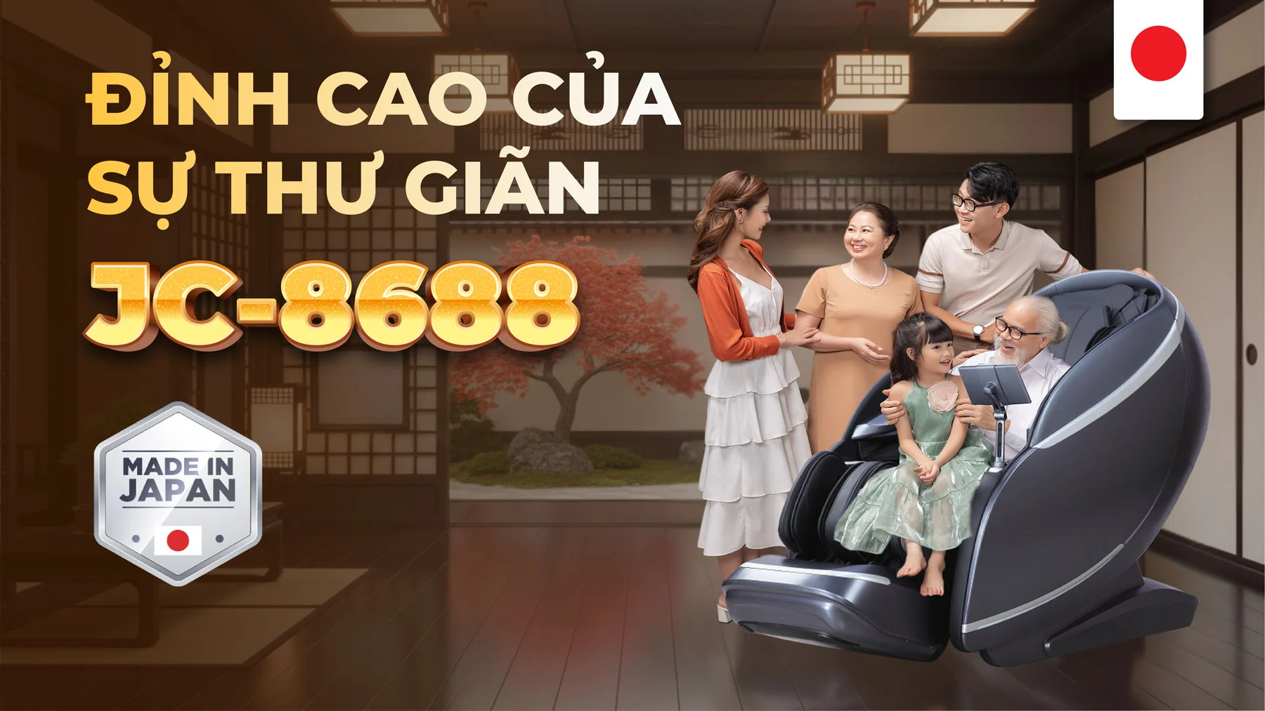 Ghế Massage JC-8688 lấy cảm hứng từ khoang thương gia hạng nhất. Thiết kế bởi Ken Okuyama – nhà thiết kế huyền thoại từng tạo dấu ấn cho Ferrari và Porsche, mang đến vẻ sang trọng và tối ưu trải nghiệm ngồi.