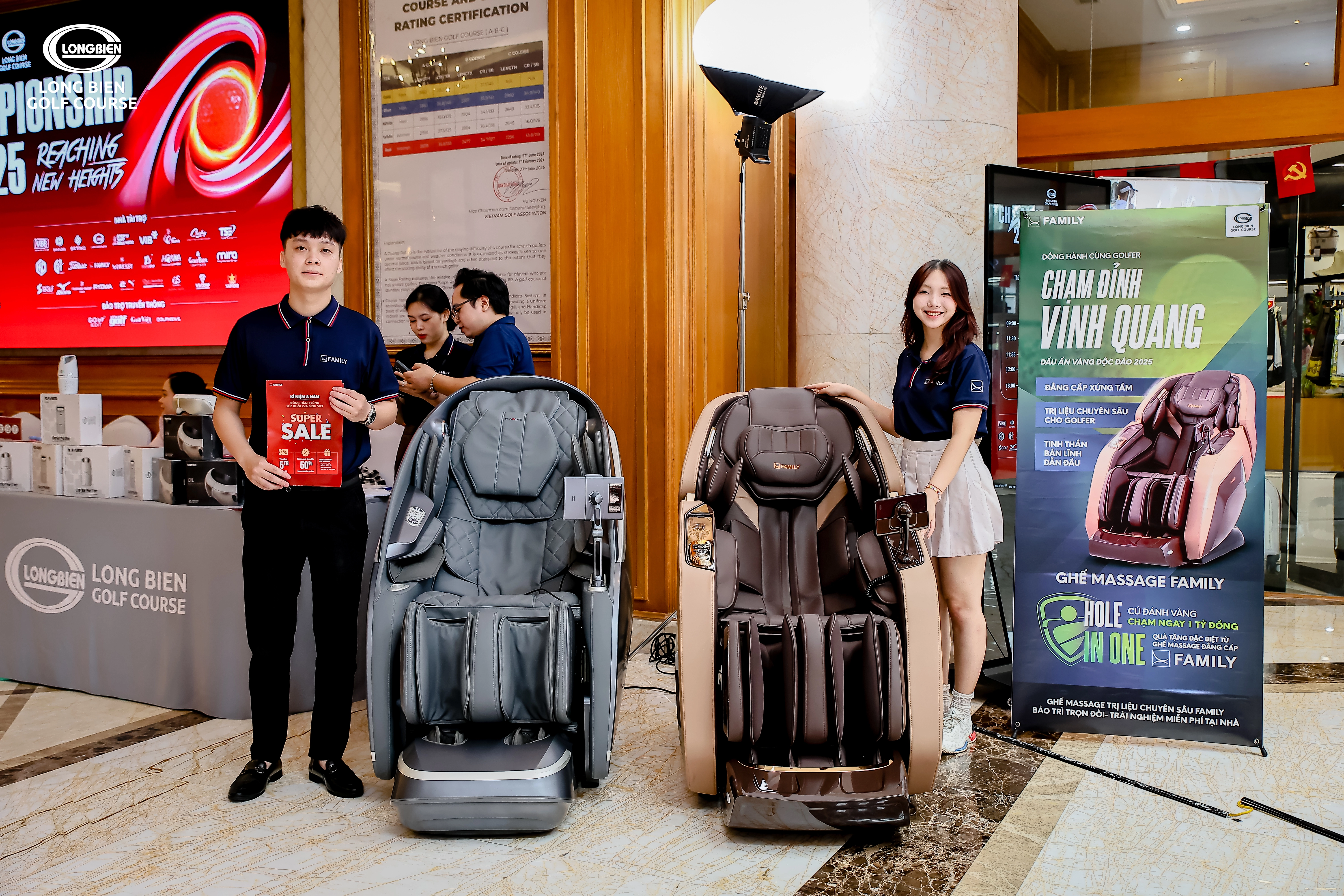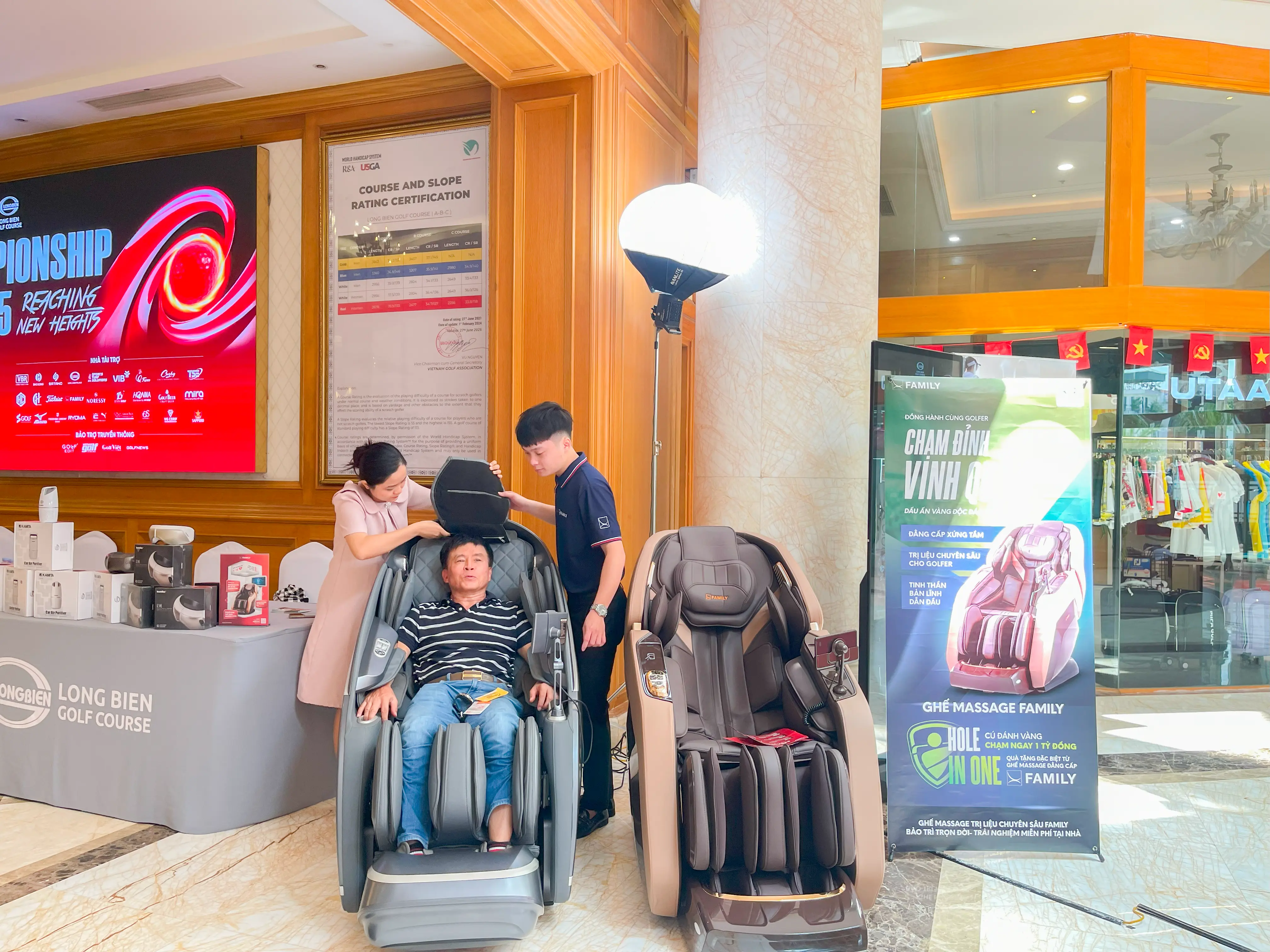 Đồng hành cùng Long Bien Golf Course Championship 2025, Ghế Massage Family không chỉ mang đến những phút giây thư giãn, phục hồi thể lực cho golfer, mà còn gửi gắm một thông điệp sâu sắc: