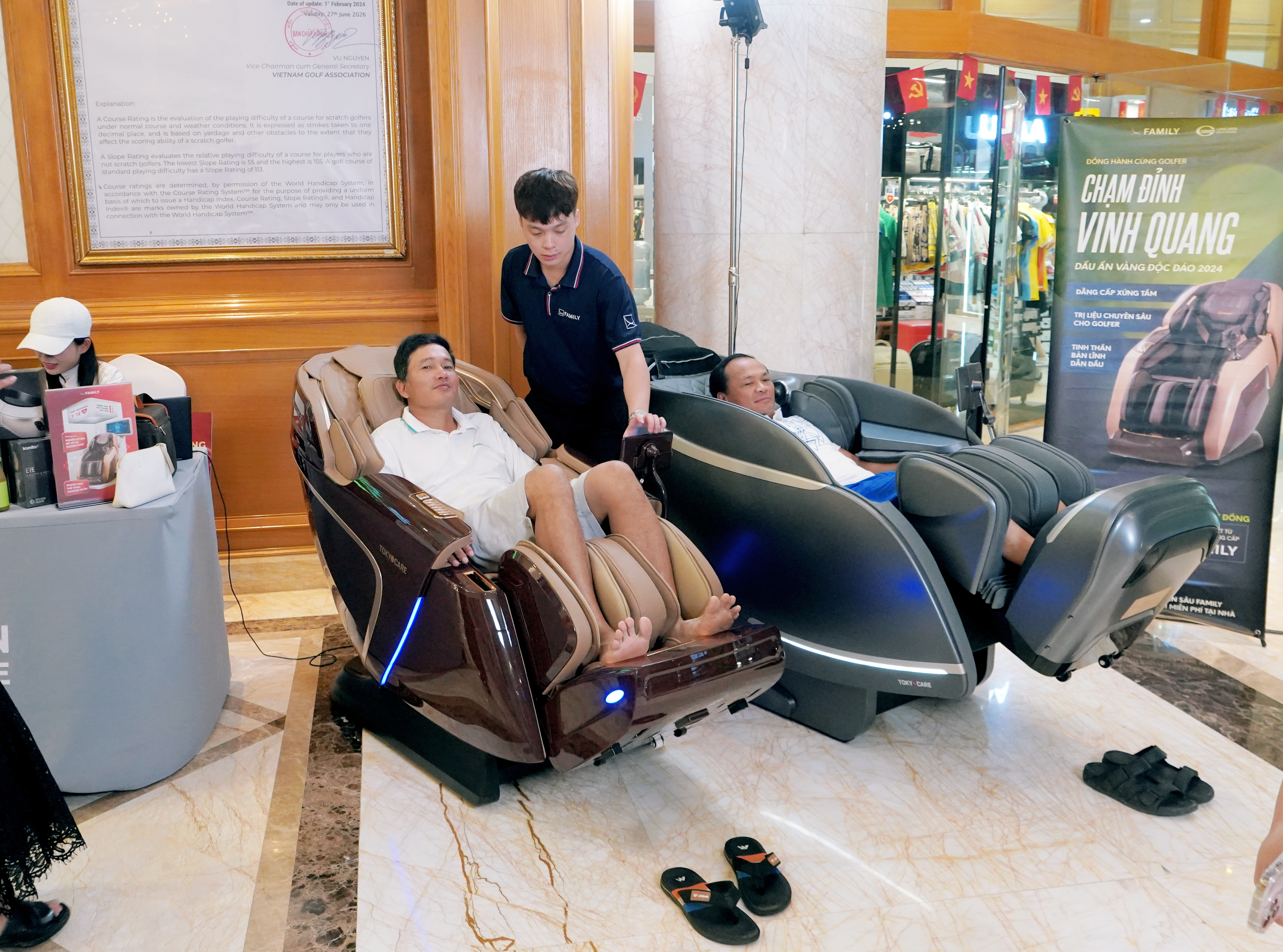 Ghế massage Family & Tokyo Care tự hào góp phần tạo nên dấu ấn cho giải đấu, đồng hành cùng golfer trên hành trình bứt phá, mang đến sự phục hồi thể lực và tinh thần tối ưu.