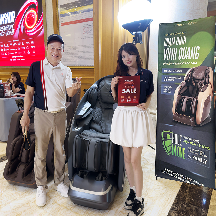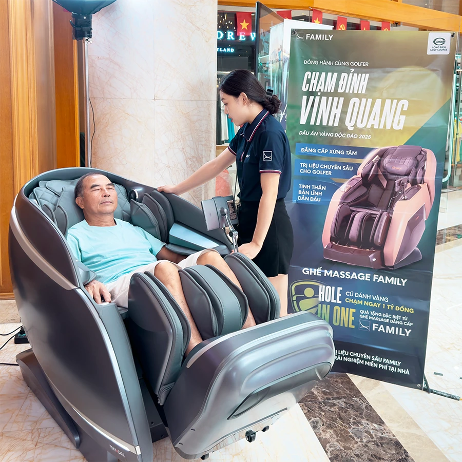 Nhờ sự kết hợp hoàn hảo giữa công nghệ – sức khỏe – trải nghiệm, Ghế Massage FAMILY được xem là “trợ thủ phục hồi phong độ” giúp golfer lấy lại năng lượng, cải thiện độ dẻo dai và duy trì tinh thần tỉnh táo trong suốt mùa giải.