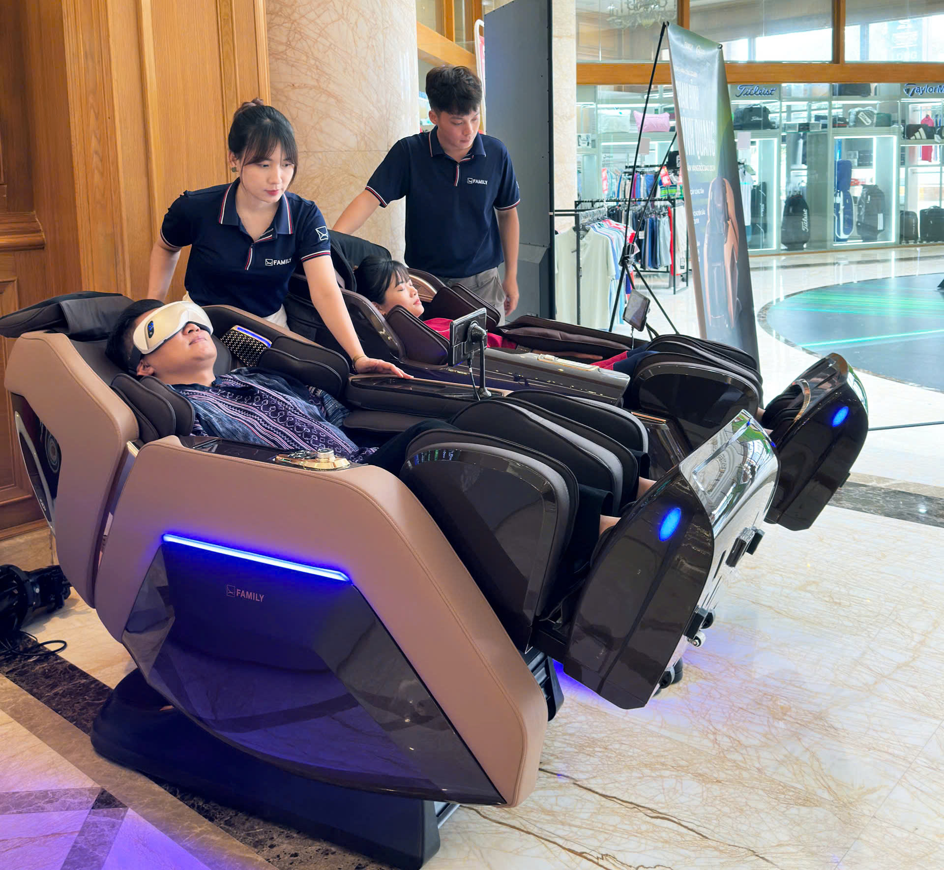 Ngay tại khu trưng bày của Family & Tokyo Care tại giải đấu Arena of Unity – sân golf Long Biên, khách tham quan sẽ có cơ hội trải nghiệm miễn phí những siêu phẩm ghế massage cao cấp như FC-699 và JC-999 – dòng sản phẩm tích hợp loạt công nghệ chăm sóc sức khỏe hiện đại bậc nhất hiện nay. Với AI cảm biến thông minh, ghế có thể quét toàn bộ cơ thể, xác định chính xác huyệt đạo cùng với công nghệ Shiatsu mô phỏng động tác chuyên gia Nhật Bản giúp tác động sâu vào vùng cổ, vai, gáy, lưng và chân, hỗ trợ giảm đau nhức, tê mỏi và lưu thông khí huyết hiệu quả. Đây là cơ hội hiếm có để người dùng cảm nhận rõ rệt sự khác biệt của massage công nghệ cao – không chỉ thư giãn mà còn chăm sóc sức khỏe toàn diện ngay tại nhà.