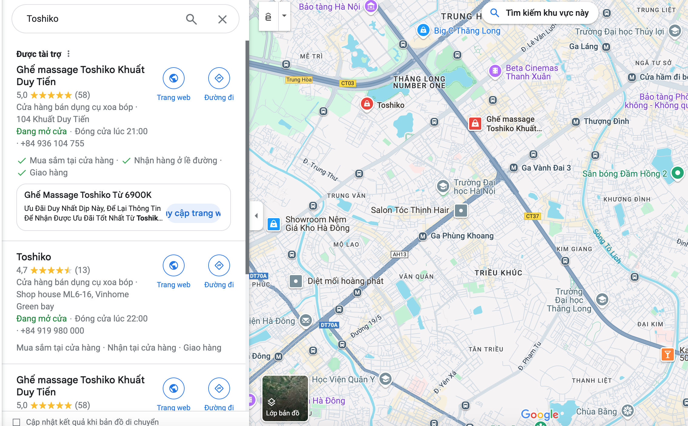 Tổng quan, Toshiko nhận được đánh giá trung bình từ 4.0 đến 5 sao, chứng tỏ uy tín và sự tin tưởng từ phía người tiêu dùng. Do đó, chúng tôi dành cho thương hiệu này 1 điểm tuyệt đối trên Google Maps.