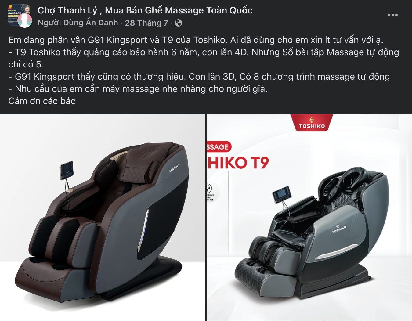 Là một trong những cái tên hàng đầu được nhắc đến, Toshiko nhận được nhiều phản hồi tích cực trong các hội nhóm về ghế massage, mọi người thường chia sẻ đánh giá về chất lượng sản phẩm và nhận tư vấn mua hàng. Chính vì vậy, chúng tôi đánh giá thương hiệu Toshiko với điểm số 1 tuyệt đối.