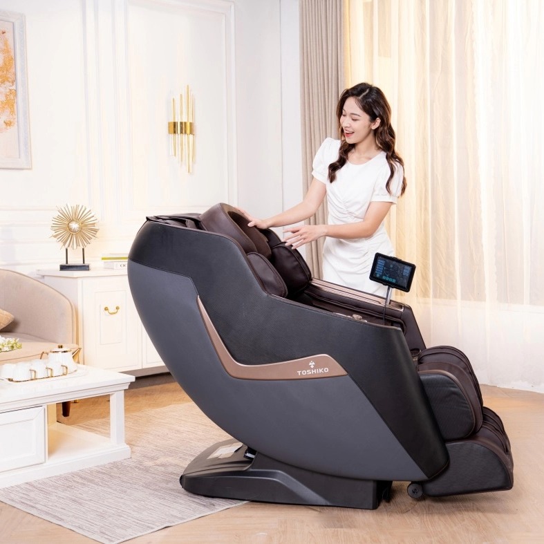 Ghế massage Toshiko là thương hiệu Nhật Bản, lắp ráp tại Trung Quốc theo tiêu chuẩn Nhật.