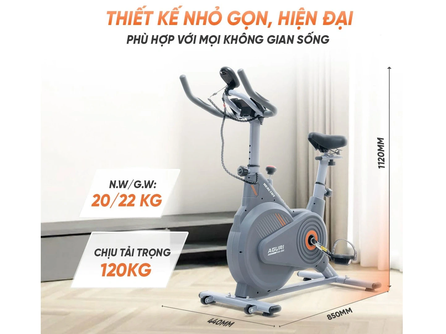 Dù có thiết kế gọn nhẹ, xe đạp tập Aguri AGS-222 vẫn chịu tải lên đến 120kg, đảm bảo độ ổn định và an toàn trong quá trình sử dụng.